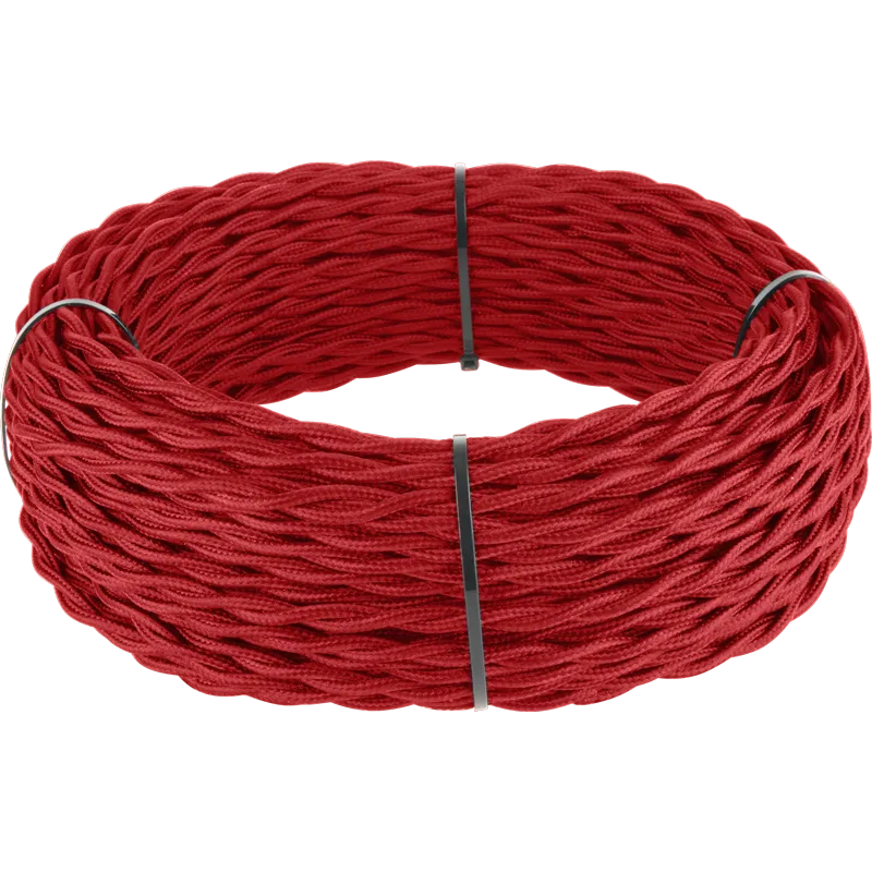 Ретро кабель витой 2х2,5 (красный). Многожильный медный провод обеспечивает гибкость кабеля и его высокие электротехнические характеристики. Наружная оплетка кабеля имитирует натуральный шелк.