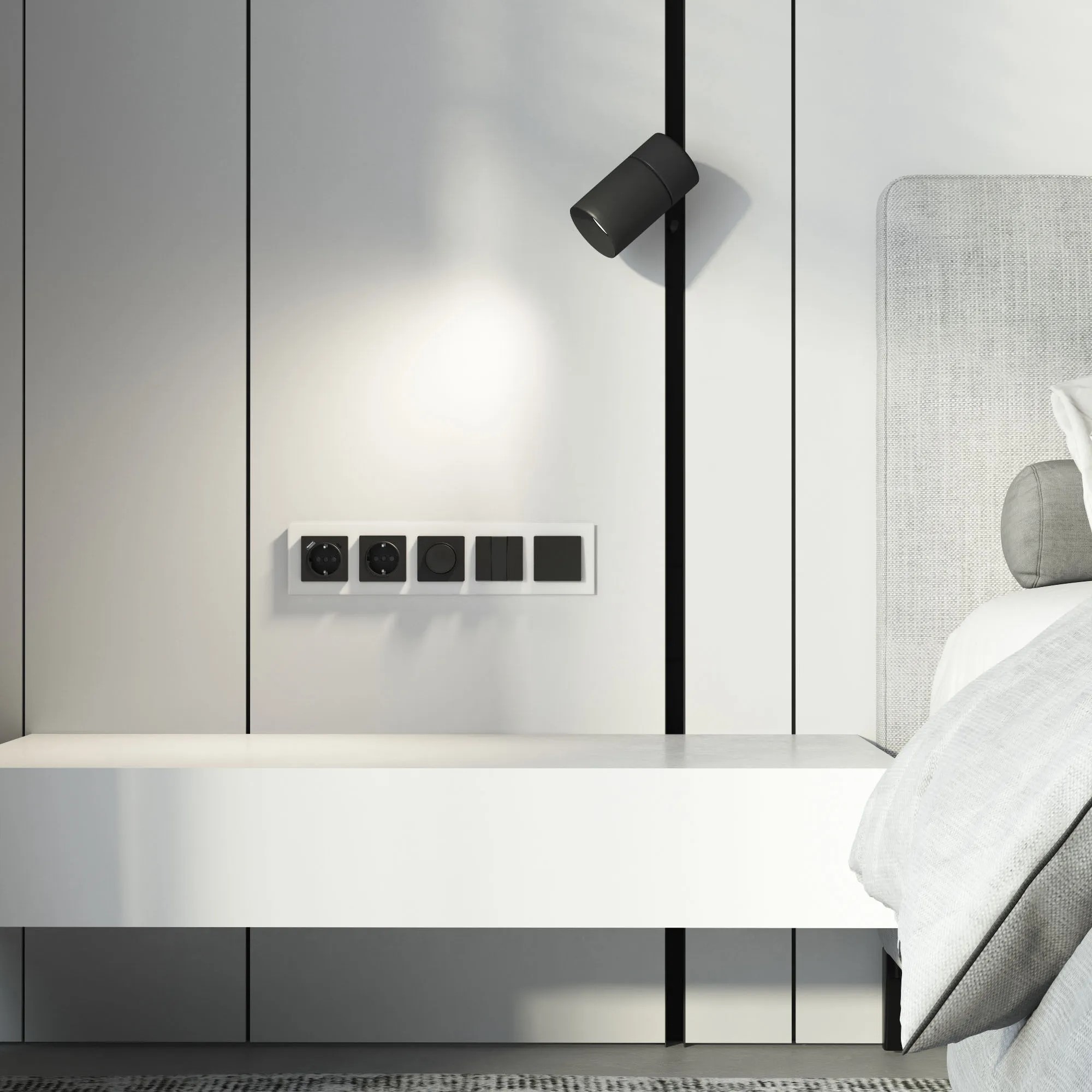 Серия Split — это инновационное решение, где рамка и механизм находятся в одной плоскости, создавая эффект встроенной панели управления. Доступна в дуэтах: белый/чёрный, айвори/белый, дымчатый/белый.